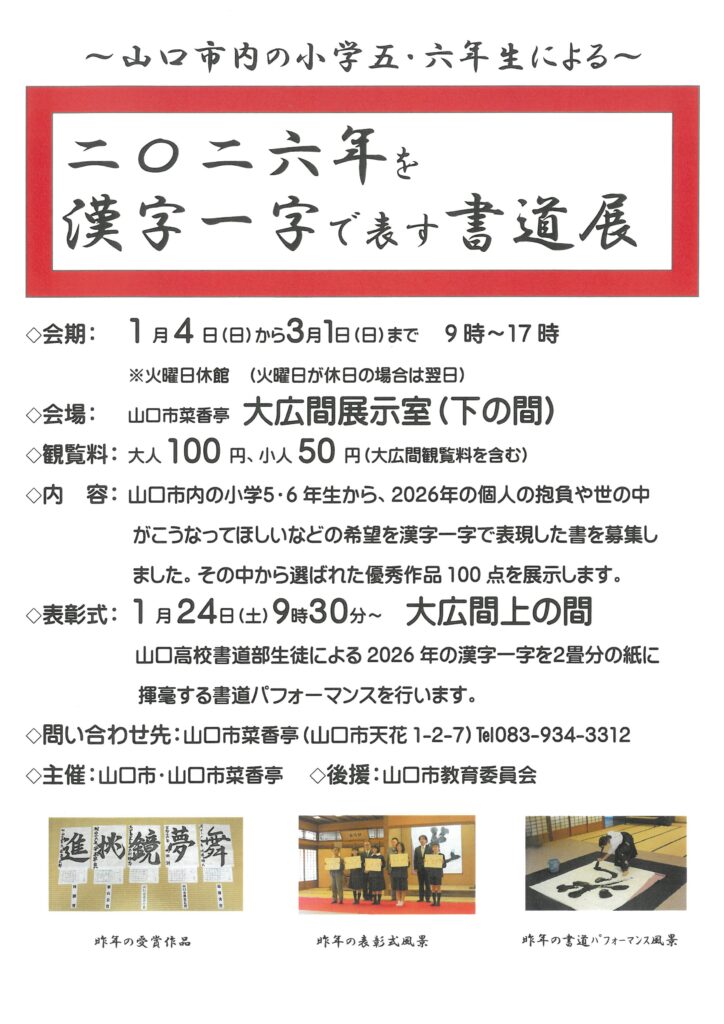 2026年を漢字一字で表す書道展