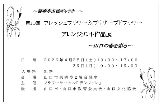 市民ギャラリー「第10回 フレッシュフラワー&プリザーブドフラワーアレンジメント作品展~山口の春を彩る~」